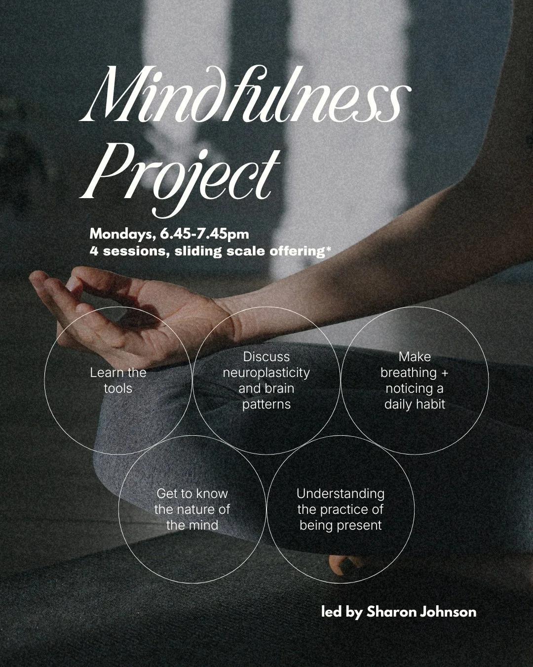 **this is a siding scale offering, $5-50 for all four sessions. Mindfulness Project is taken as a block of learning rather than drop-in style.
